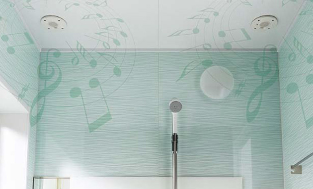 浴室専用のオーディオとスピーカーを取り付けて、浴室でお気に入りの音楽などを楽しむことができます。