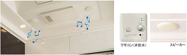 浴室の天井に防水スピーカーを取付けることで、入浴しながら音楽を楽しめる機能です。