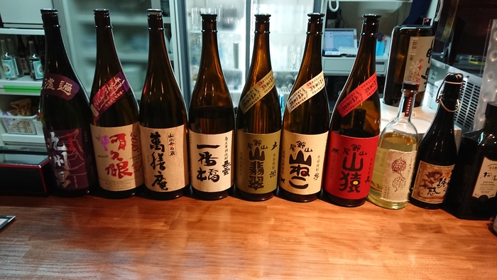 常に40種類のこだわりのお酒を取り揃えている。店主が自ら能登まで赴いて仕入れた酒もあるとか。一番人気は焼酎キンミヤ。