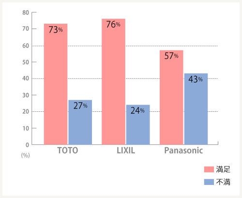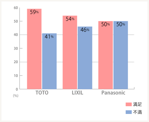 どのメーカーでも6割以上のユーザーはトイレの洗浄機能に満足しているようです。