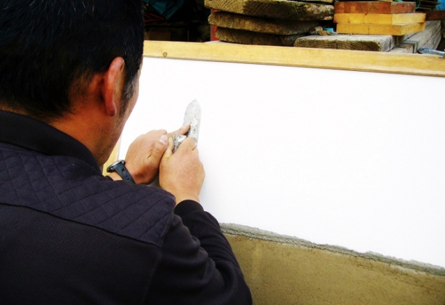 漆喰とは、石灰石を焼いてできた生石灰を練った消石灰が主原料とし、海藻糊とすさといわれる藁や麻の繊維を混ぜてできたものです。