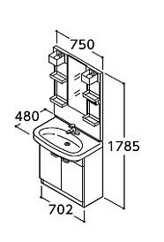 サイドの収納だけでは物足りない方のために、上部にウォールキャビネットを取り付けて豊富な収納スペースを備えたモデルです。普段は使わない日用品やタオルなどをしまっておくのに非常に便利です。洗面化粧台と天井の間に設置し、限られたスペースを有効活用することができます。